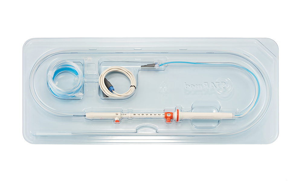 El electrodo EUSRA™ de STARmed es una aguja monopolar de 19G diseñada para ablación de tumores pancreáticos, neuroendocrinos y quísticos bajo guía de ultrasonido endoscópico (EUS). Permite un tratamiento focalizado y eficiente, minimizando el daño a tejido sano circundante.