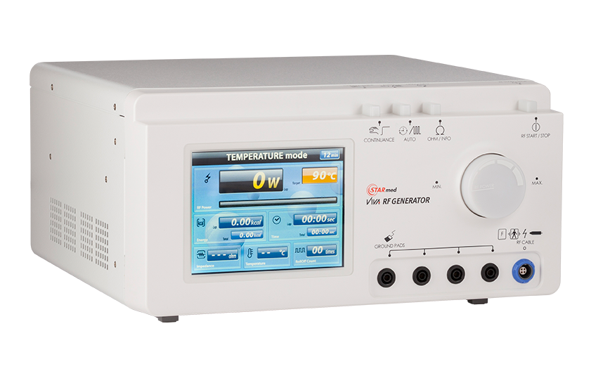 El VIVA RF Generator de STARmed es un generador de radiofrecuencia de uso clínico diseñado para ablación de tejidos blandos. Compatible tanto con electrodos monopolares como bipolares, permite la aplicación de energía térmica en entornos quirúrgicos y guiados por USG, y cuenta con control en tiempo real de impedancia y temperatura para mayor seguridad.